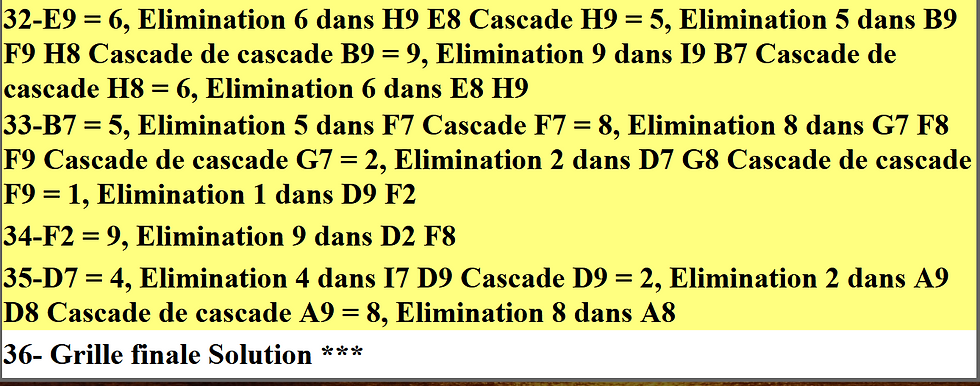 Résolution par ordinateur, utilisant 32 méthodes permettant d’éviter les impossibilités et 19 méthodes permettant d’éviter les défauts d’unicité (Deuxième résolution avec calcul par application successive de méthodes)